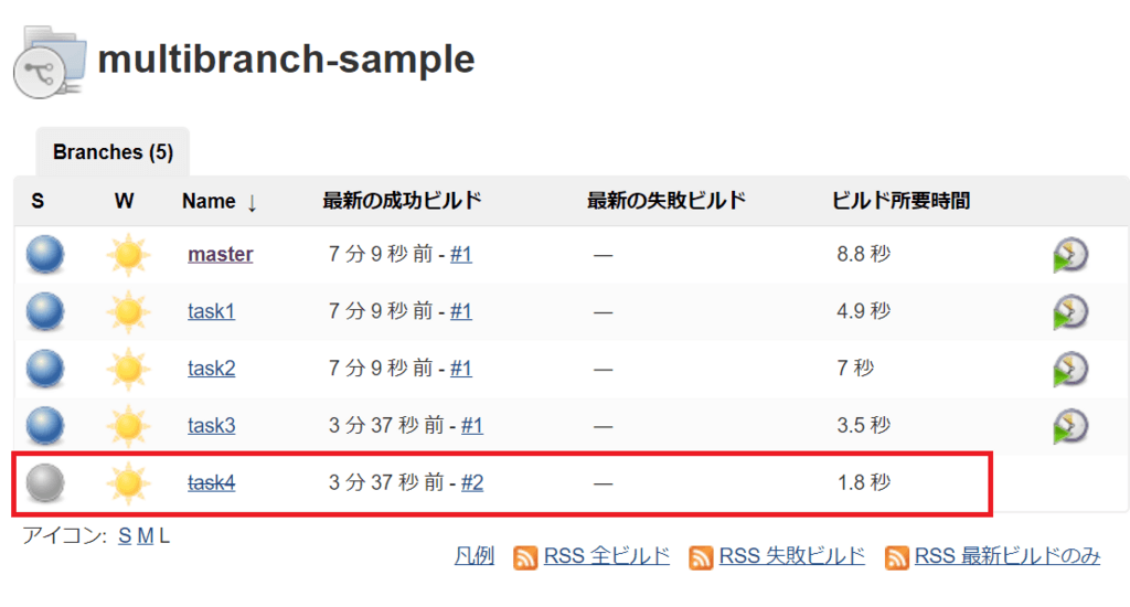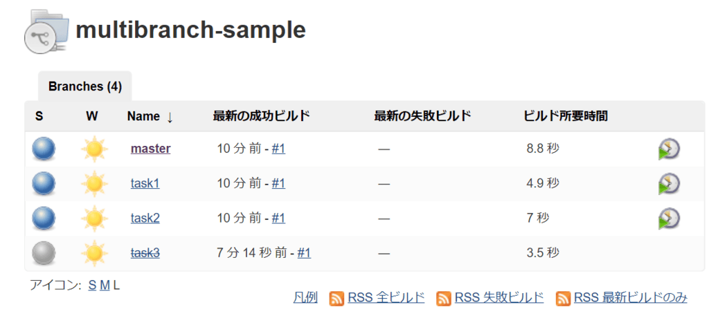 Muitibranch Pipeline のプロジェクトを利用すると、ブランチごとにジョブが作成される。