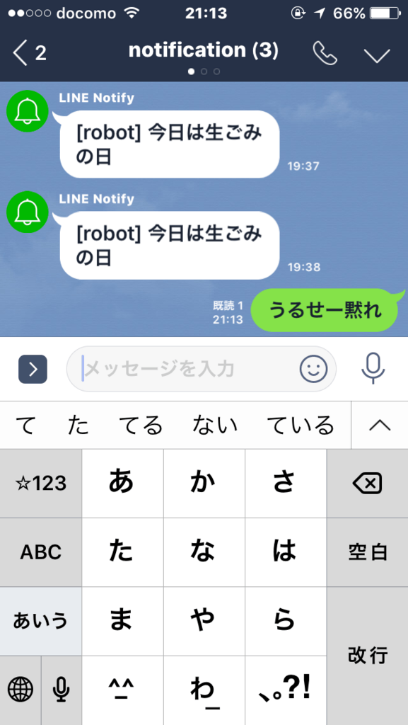 唐突ですが、我が家の課題に『ゴミ出しを忘れる』というのがあります。たまに、家に帰って扉開けたらやばいニオイがして、激しく後悔します。ということで、LINEへ毎朝のゴミ出しの通知をしてみました。