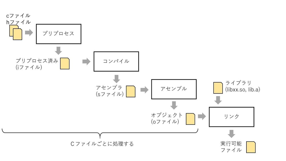 以下のソースコードがコンパイル~実行されるまでに、何が行われるのかを理解する。 細かいオプションや処理の詳細は追わない。
