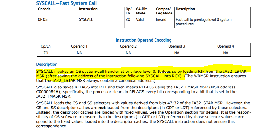 そのため、割込みやsyscall命令を利用したシステムコール専用の手続きが用意されている。