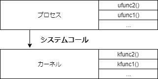 システムコールはつまりカーネル関数の呼び出しだが、通常の関数と同じ方法ではカーネル関数は呼び出せない。